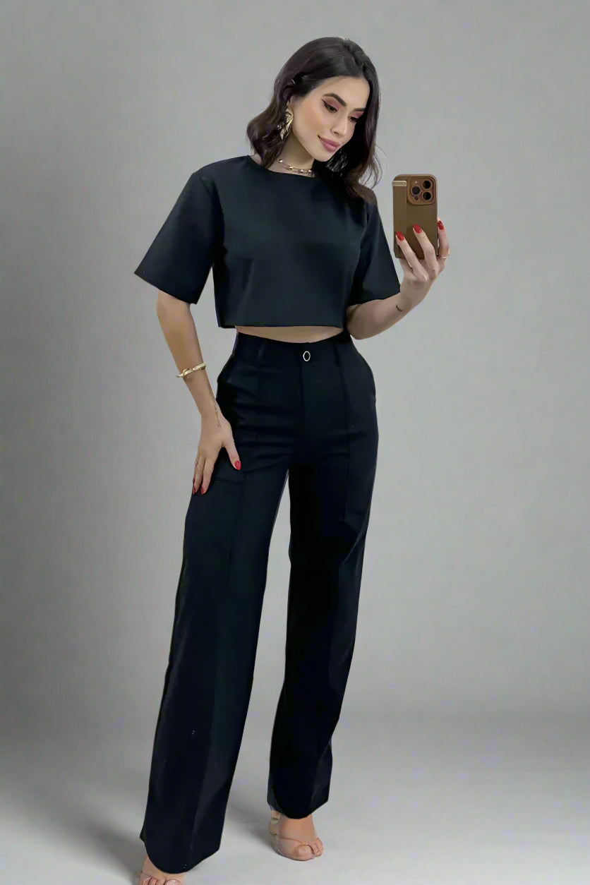 The Vienna Power Set is the perfect combination of minimalism and bold sophistication. Designed with clean lines and a tailored silhouette, this two-piece set features a structured crop top and high-waisted wide-leg trousers, creating a polished yet effortless look. Ideal for power dressing, statement street style, or elegant casual wear, this set makes an impact wherever you go.